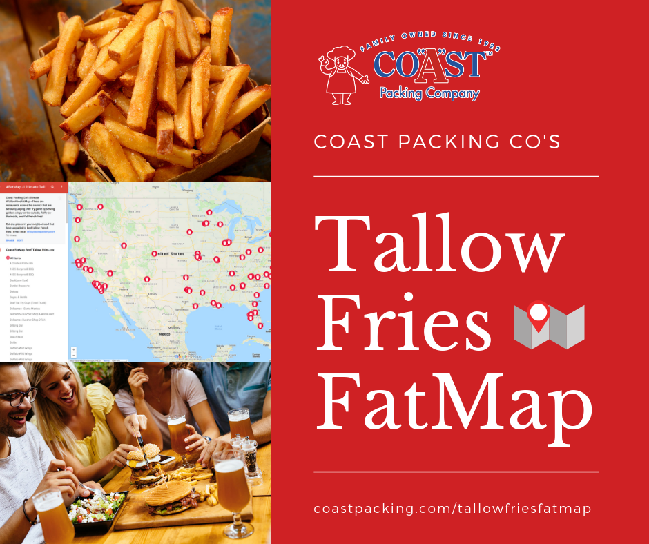 “In terms of freshness, flavor and texture, there really is no comparison to beef tallow French fries, which is exactly why we’re so delighted when consumers can taste for themselves,” Gustafson said. “Toward that end, we at Coast Packing are continuing our efforts to demonstrate that farm fats like tallow are tasty, traditional and amazingly palate-pleasing. We encourage everyone to tweet their love for French fries fried in beef tallow far and wide.”